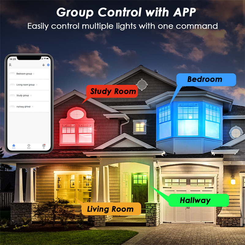 You can control each light individually or group lights together so that you can brighten, dim, change color, turn on and turn off your lights simultaneously.